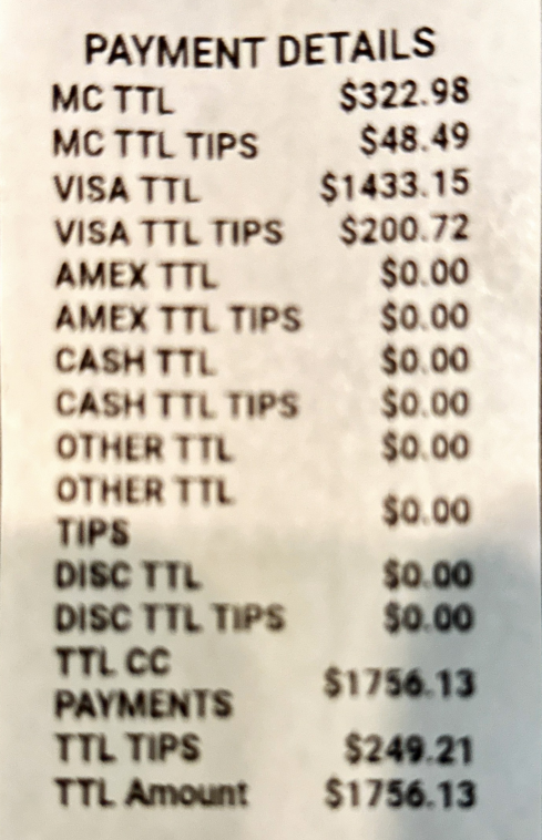 - Servers will only see their own individual sales totals, ensuring they have access to their personal sales data without viewing others' totals.