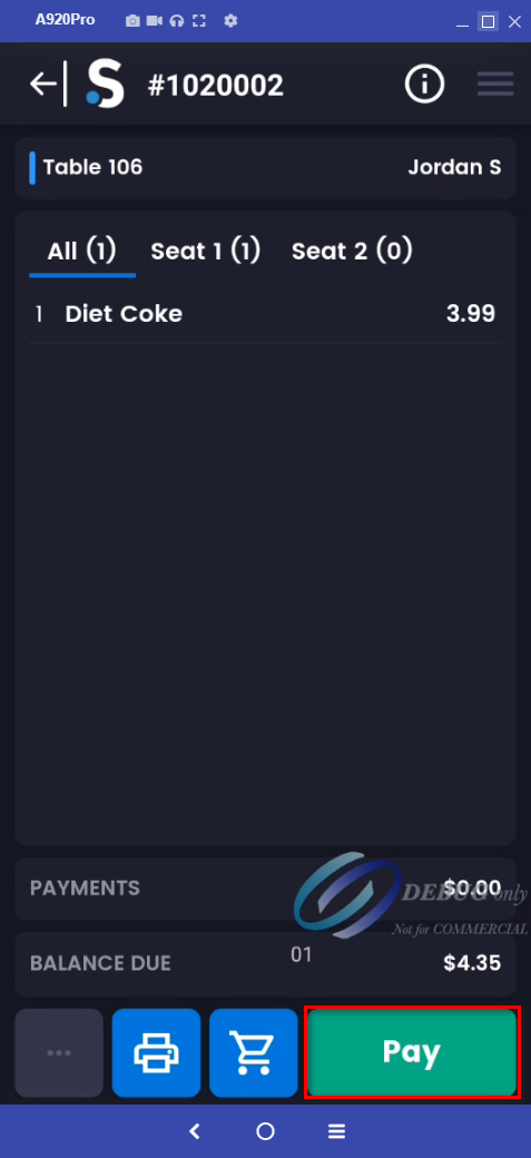 - Log into your device and navigate to the payment screen.
