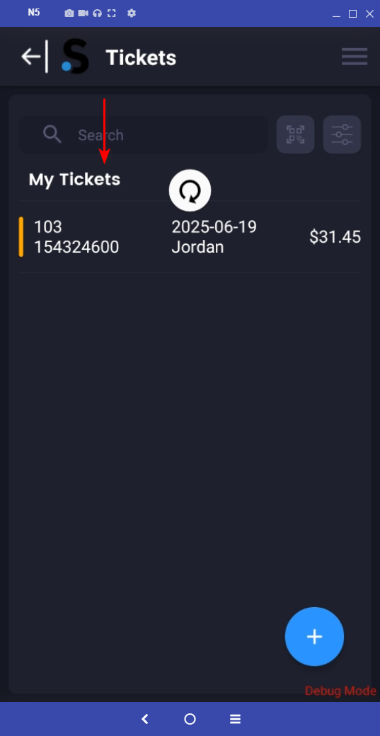 To refresh the list, pull down from the top of the tickets page to get the latest tickets created in the system.
