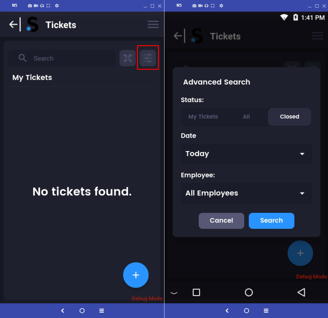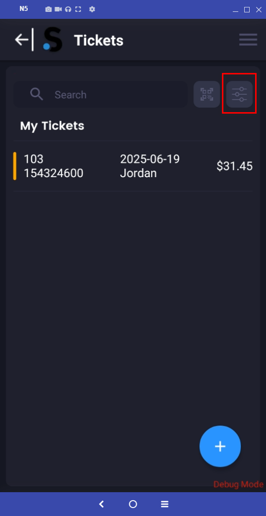 To do an advanced search for prior tickets, select the filter button with the three lines and three circles: