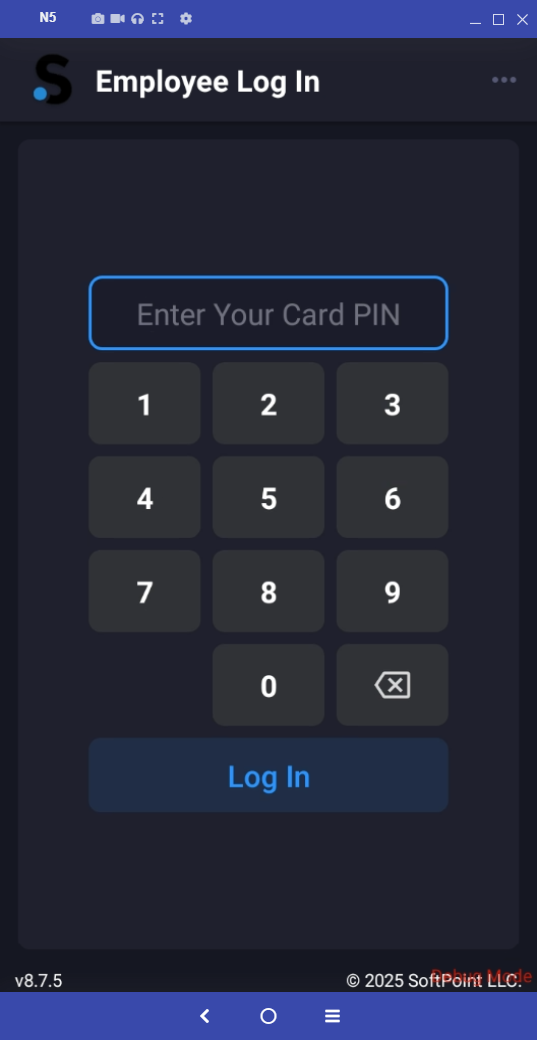 This is the section where you can put in your pin number or swipe your paired mag card to log into the device.