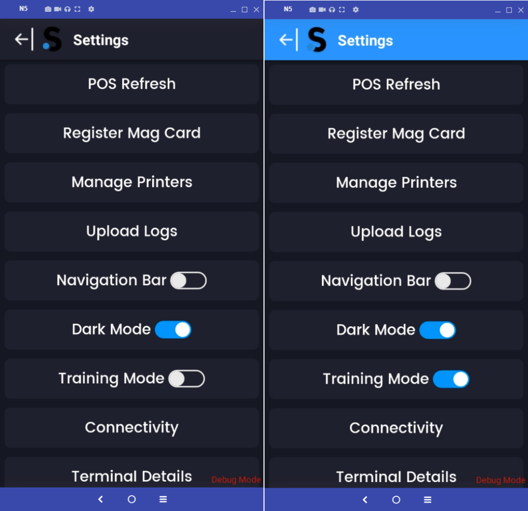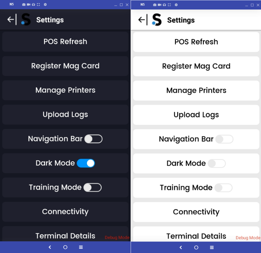 Dark Mode – This will change what color mode the devices are on. They can default to the mode selected on the SoftPoint Dashboard. The terminals can be changed individually on a terminal by terminal basis.