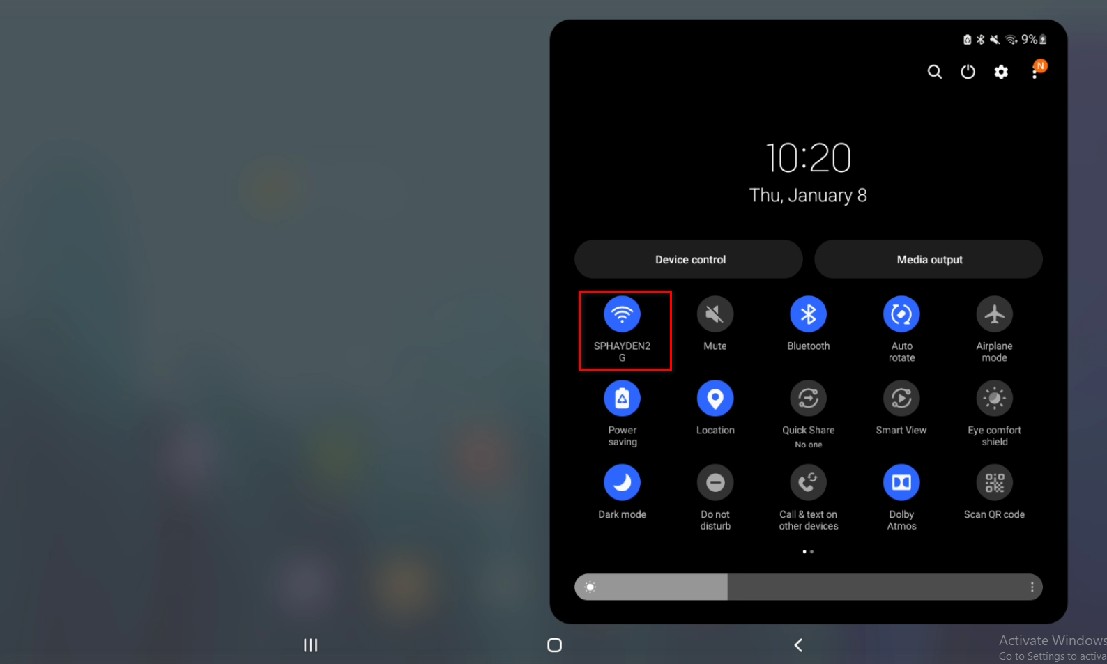 Then you can drag it down fully to see the full settings. From there, long hold on the Wi-Fi symbol until it brings you to the Wi-Fi settings.