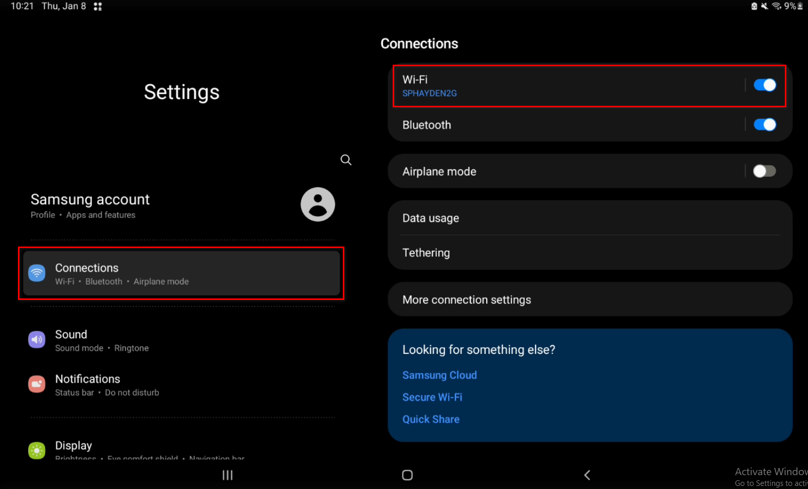 This will then bring you to the same screen where you can select connections and then the Wi-Fi to set it up.